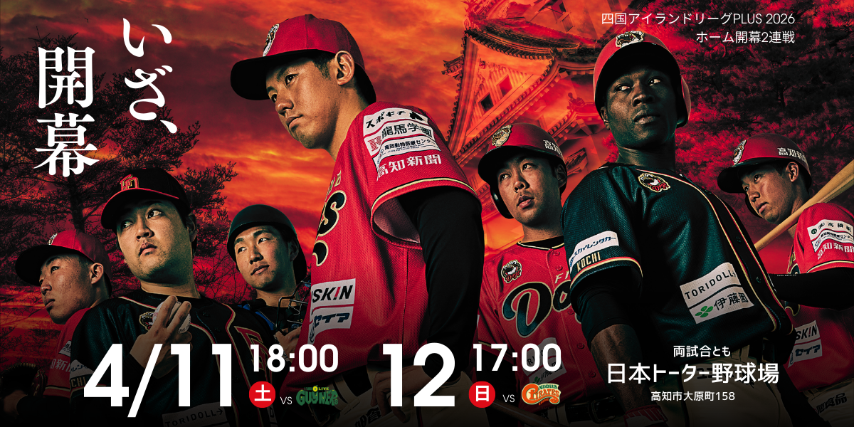 PICK UP 試合情報はこちら 選手情報はこちら 公式オンラインショップはこちら 野球スクール詳細はこちら 個別トライアウトエントリーはこちら やきゅう体験PJ詳細はこちら 四国アイランドリーグplus リーグについて くわしくはこちら OFFICIAL YouTube OFFICIAL SNS Instagram X(旧Twitter) facebook LINE DIGITAL MARKETING PARTNER DIGITAL MARKETING PARTNER BANNER SPONSOR ▶ トップページ ▶ 試合 - 試合情報 ・前期 ・後期 ・交流戦・オープン戦 ・過去の試合情報 - チケット購入 - 球場について ・球場ご案内 ・BBQテラス ・観戦時のお願い ▶ チーム - チーム紹介 - 選手紹介 ▶ グッズ ▶ スポンサー - チームスポンサー - 個人選手スポンサー - 企業一覧 - ワンだふる基金 ▶ ファンクラブ ▶ アカデミー - 野球スクール - やきゅう体験 - 中学野球クラブ ▶ 初心者ガイド - リーグについて - 野球の基礎 - 応援スタイル - 球場での楽しみ方 ▶ 新着情報 ▶ 運営会社 - 会社概要 - 旧 高知南高校グラウンド予約