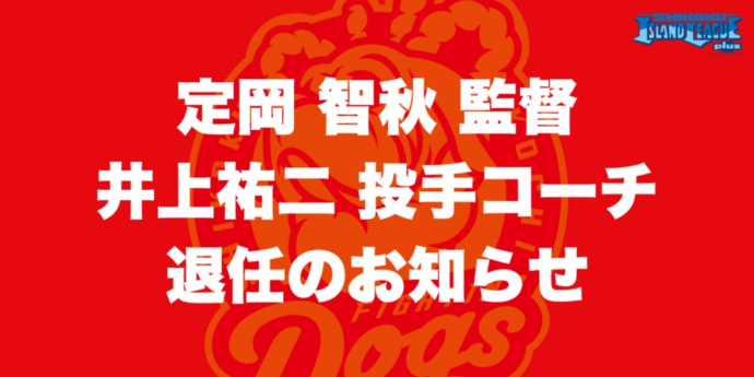 高知ファイティングドッグスでは、定岡智秋監督、井上祐二コーチが今季の契約期間満了をもって退団することをお知らせいたします。