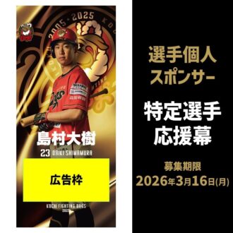 高知ファイティングドッグス球団では、2026年シーズン⚾選手個人スポンサーの募集を開始しましたので、お知らせいたします。こちらは、選手単位でのスポンサーとなります。※売上の一部を選手個人へ還元いたします