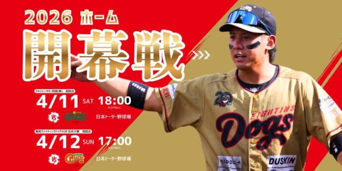 高知ファイティングドッグス球団では、2026シーズンのホーム開幕2連戦が下記日程で決まりましたので、お知らせいたします。