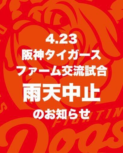 4.23阪神タイガースファーム交流試合 雨天中止のお知らせ
